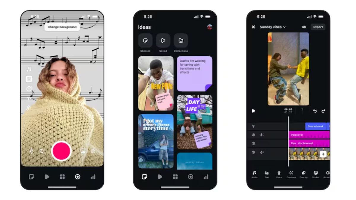 Darüber können Benutzer mit der App ihren Hintergrund auch durch einen Greenscreen ersetzen oder eine Video übe lagerung hinzufügen. Es steht eine große Auswahl an Schriftarten, Sound- und Spracheffekten, Filtern, Aufklebern und anderen Elementen. Die App soll den Ton verbessern, indem sie Hintergrundgeräusche entfernt und automatisch generierte, anpassbare Untertitel .