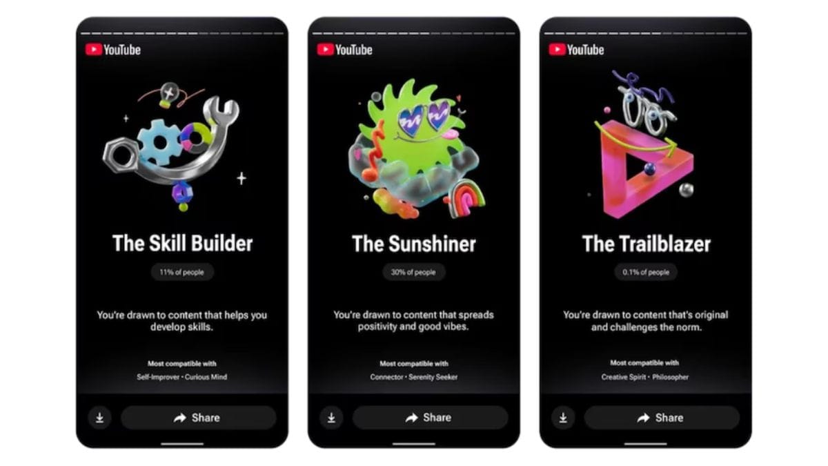 Der neue YouTube-Rückblick nutzt den Wiedergabeverlauf eines Nutzers, um bis zu zwölf Karten zu erstellen. Diese heben die beliebtesten Kanäle, häufig angesehene Themen, Veränderungen im Sehverhalten und eine Persönlichkeitskategorie basierend auf den Inhaltspräferenzen hervor, erklärte das Unternehmen in einem Blogbeitrag. Zu den Persönlichkeitskategorien gehören Abenteurer, Talentförderer, Sonnenschein, Entdecker, Netzwerker, Träumer und Philosoph.